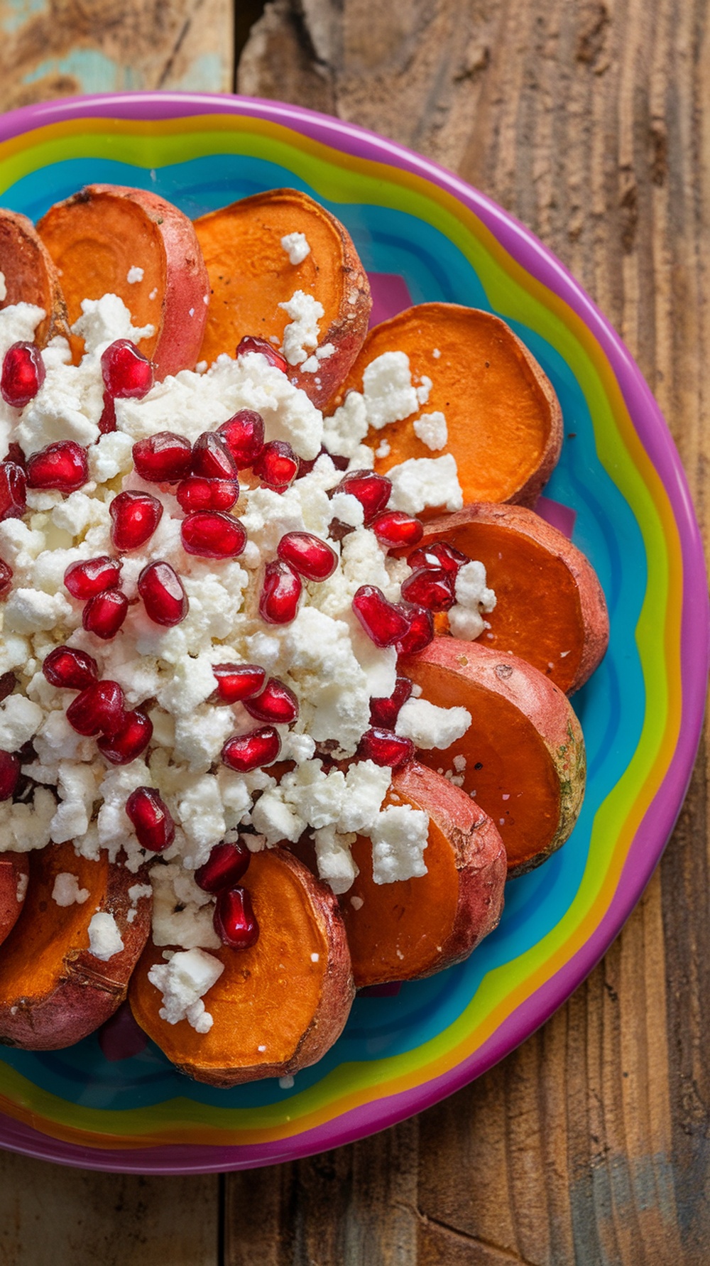 Sweet And Savory: Roasted Sweet Potatoes With Feta And Pomegranate